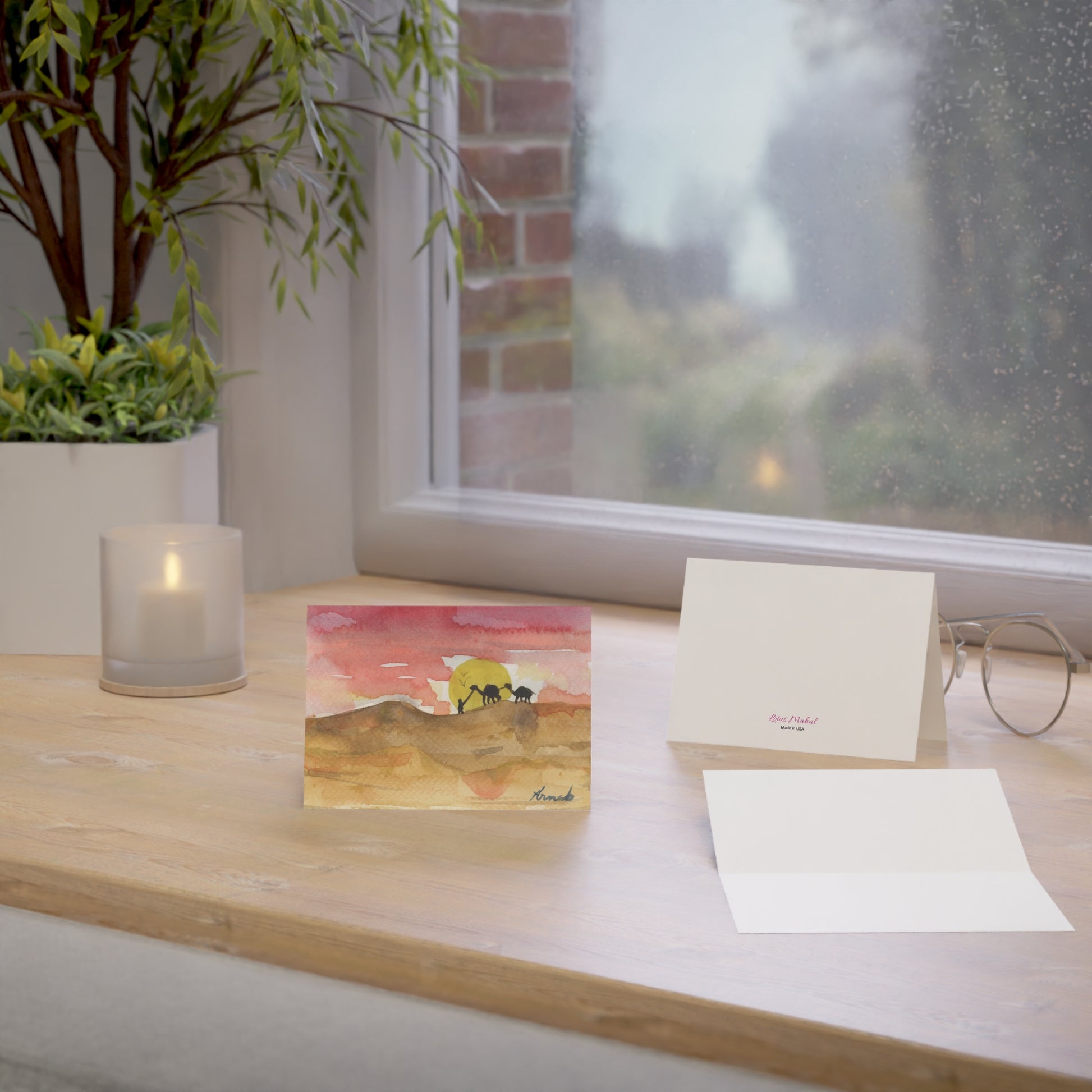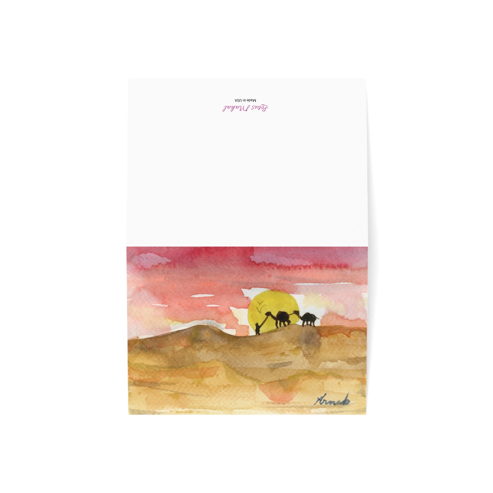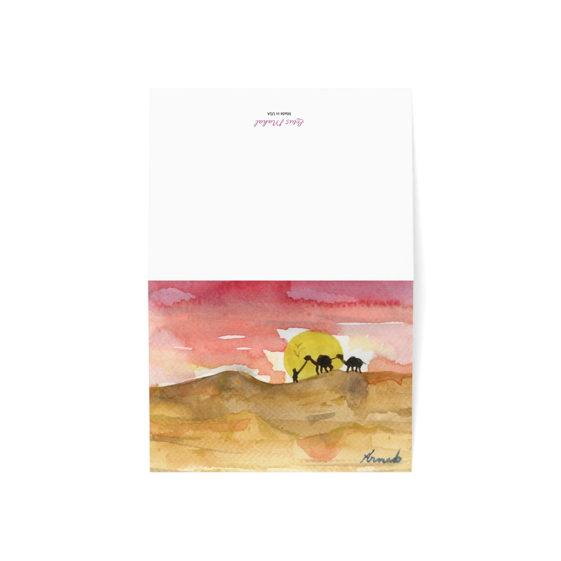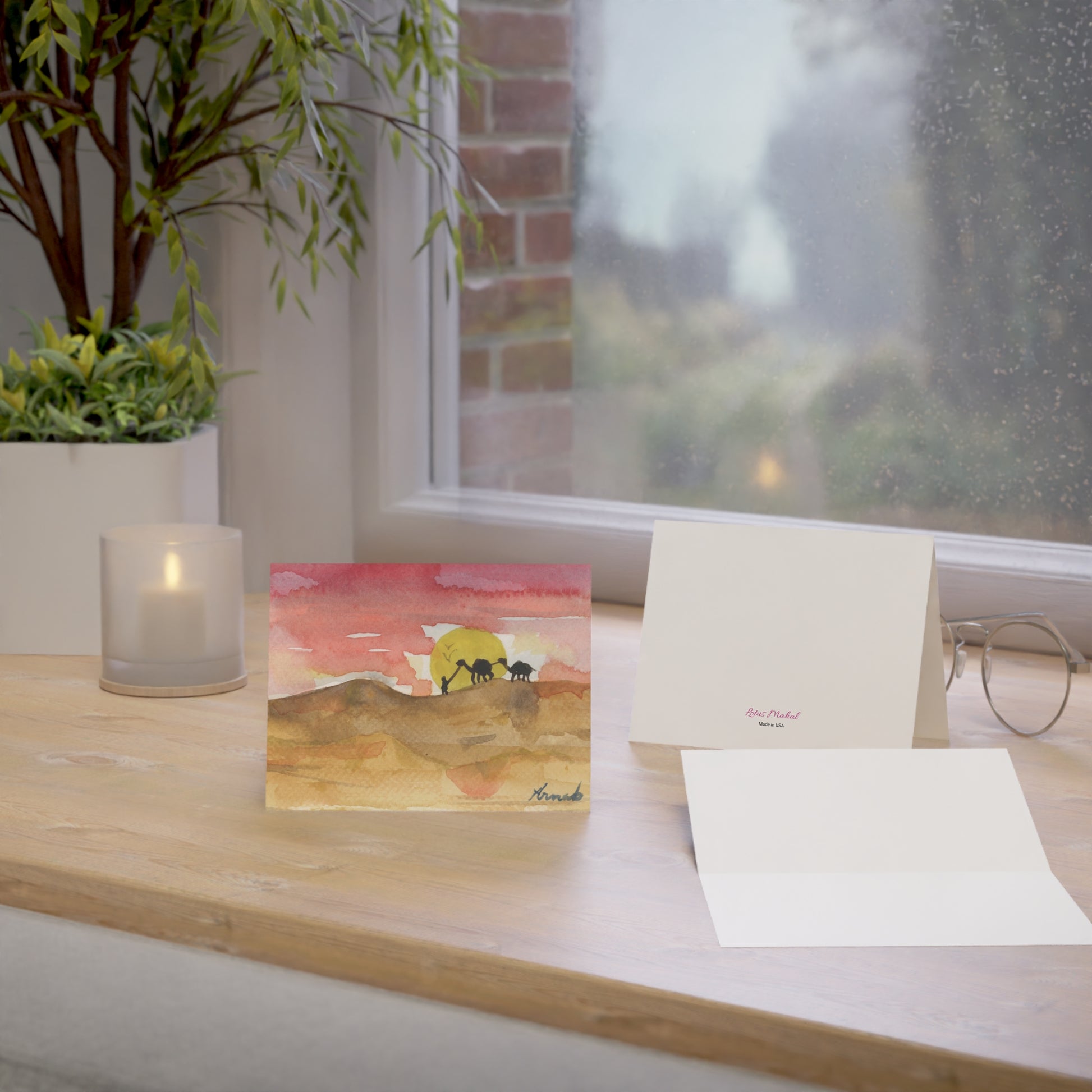 Indulge in the beauty of Arnab's watercolor artwork, "Saharan Sunset,". Each card showcases a unique, hand-painted artwork that brings a touch of nature's beauty to your messages.
