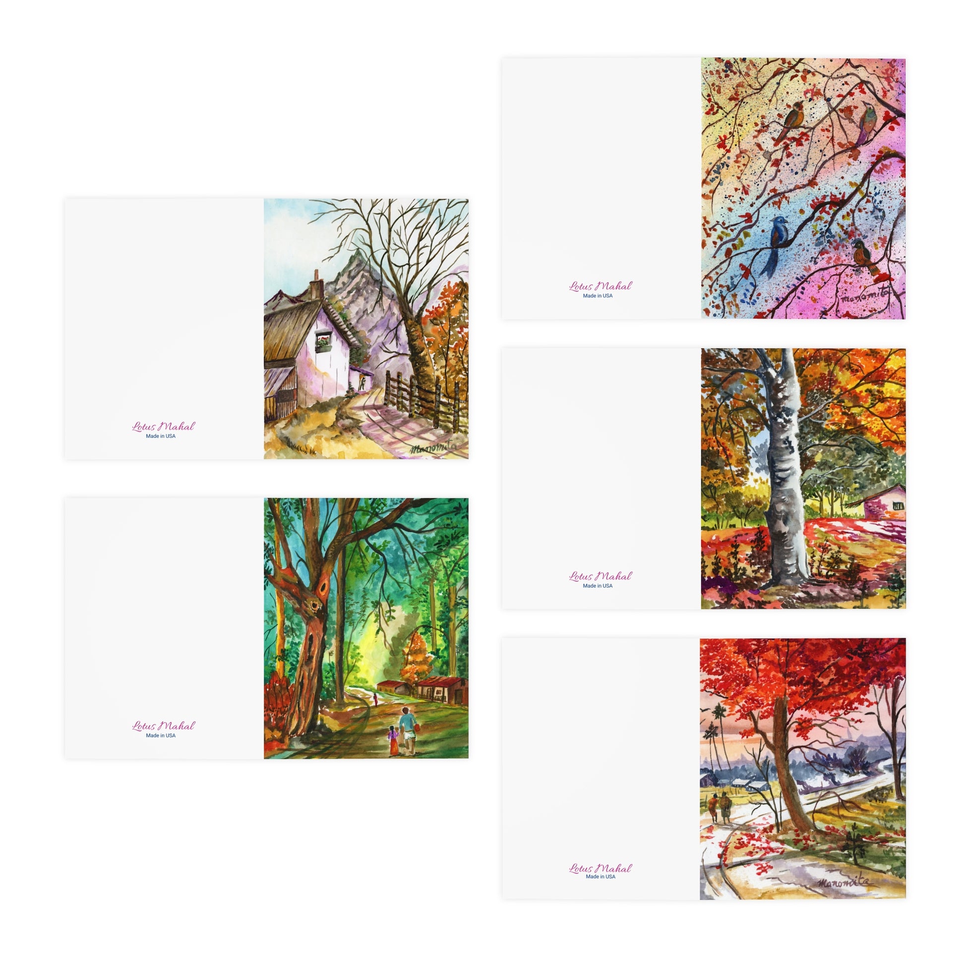 Fall Foliage Watercolor Printed Greeting Cards - 5 Design Set