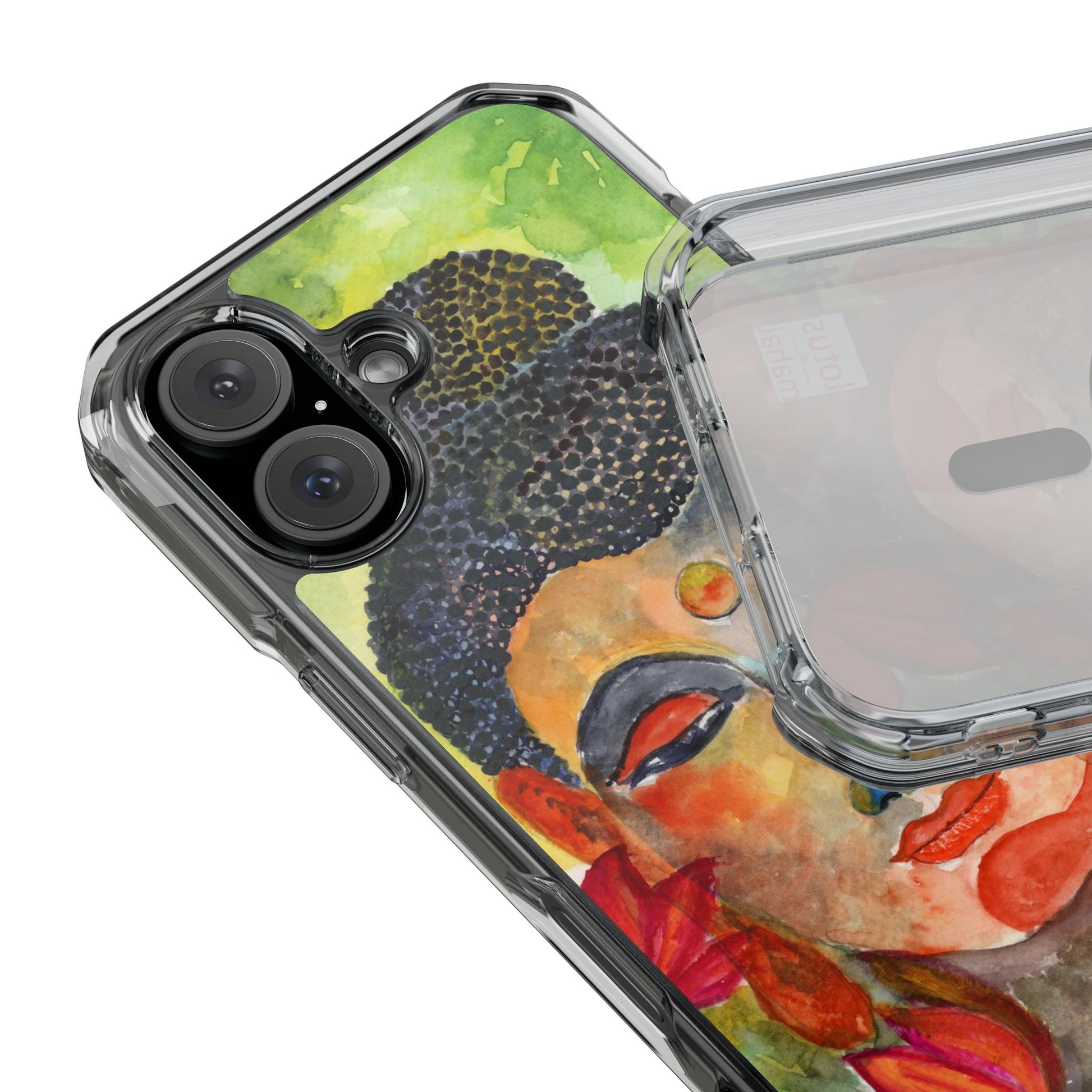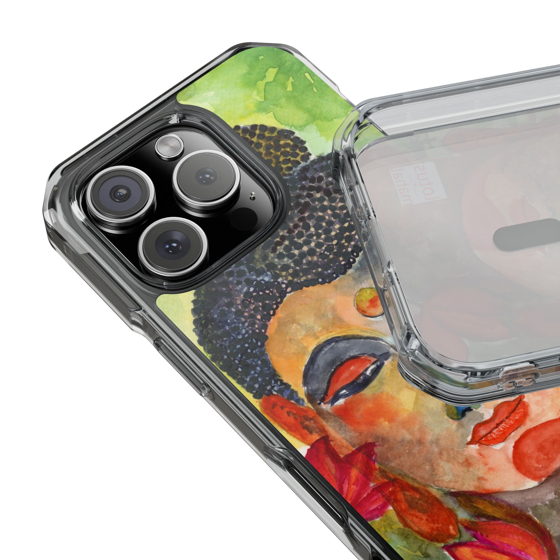 Protect your iPhone 14 or iPhone 15 or iPhone 16 with this MagSafe®-compatible impact case, crafted from durable polycarbonate and flexible TPU. This elegant and subtle case features an embedded MagSafe®-compatible module for seamless accessory compatibility, air-cushioned bumper corners for superior drop protection, and holes for straps or charms, ensuring both style and functionality.