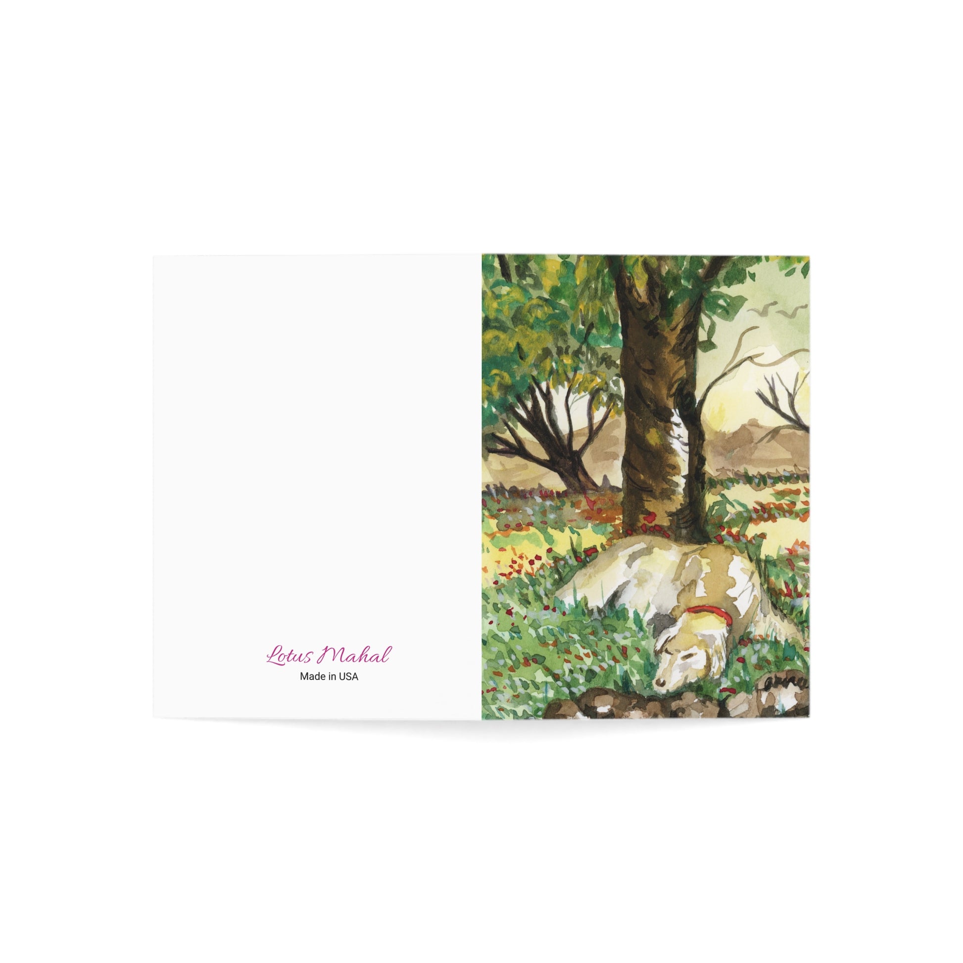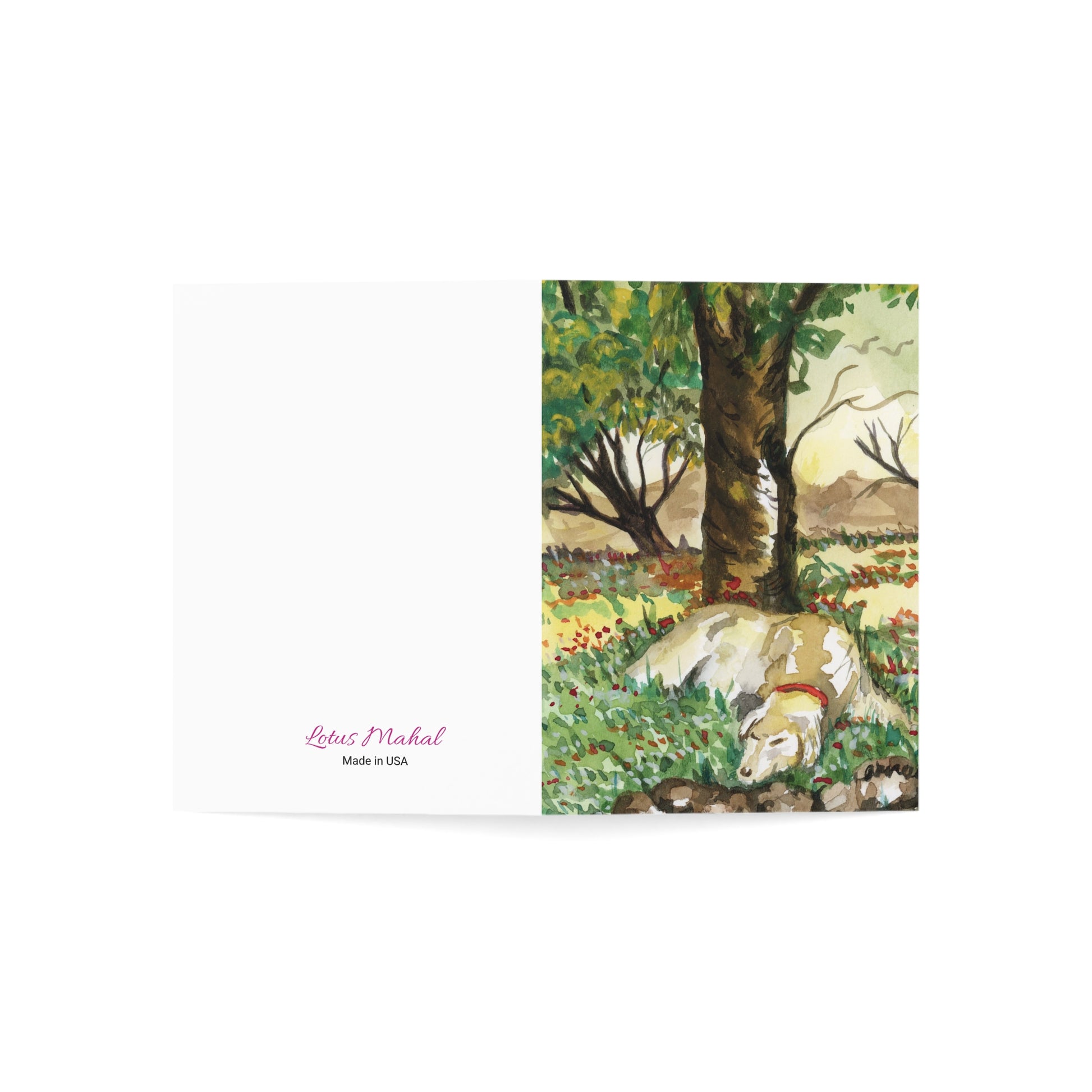 Immerse yourself in the tranquility of nature with this captivating watercolor painting of a beautiful dog. The intricate details and vibrant colors bring the beautiful pet to life. This postcard is perfect for expressing appreciation, encouragement, or simply sharing your love for dogs and pets.