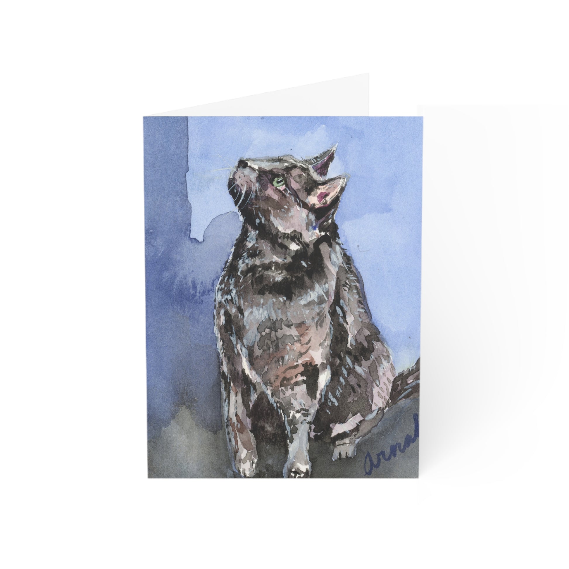 Immerse yourself in the tranquility of nature with this captivating watercolor painting of a cute grey Russian Blue cat model named Puchu. The intricate details and vibrant colors bring Puchu to life. This greeting card is perfect for expressing appreciation, encouragement, or simply sharing your love for felines and cats.