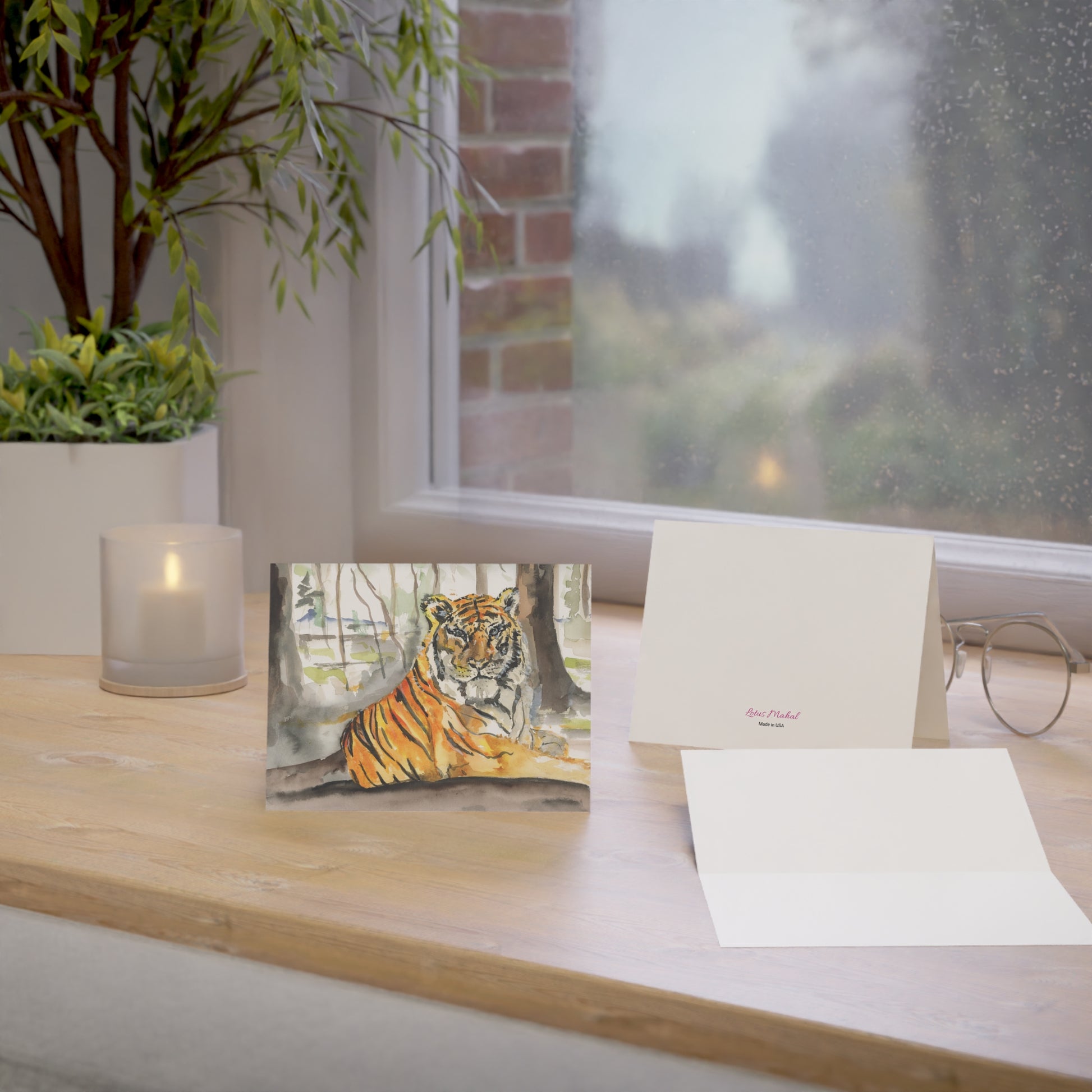 Capture the essence of joy and wonder with our watercolor greeting cards featuring a tiger. Each card showcases a unique, hand-painted artwork that brings a touch of nature's beauty to your messages.